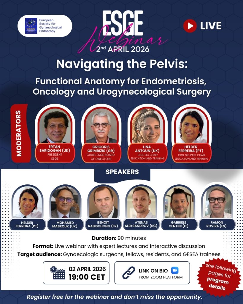 The European Society for Gynaecological Endoscopy (ESGE) together with the Special Interest Group (SIG) Education & Training, is pleased to announce an ESGE Webinar: Navigating The Pelvis: Functional Anatomy for Endometriosis, […]