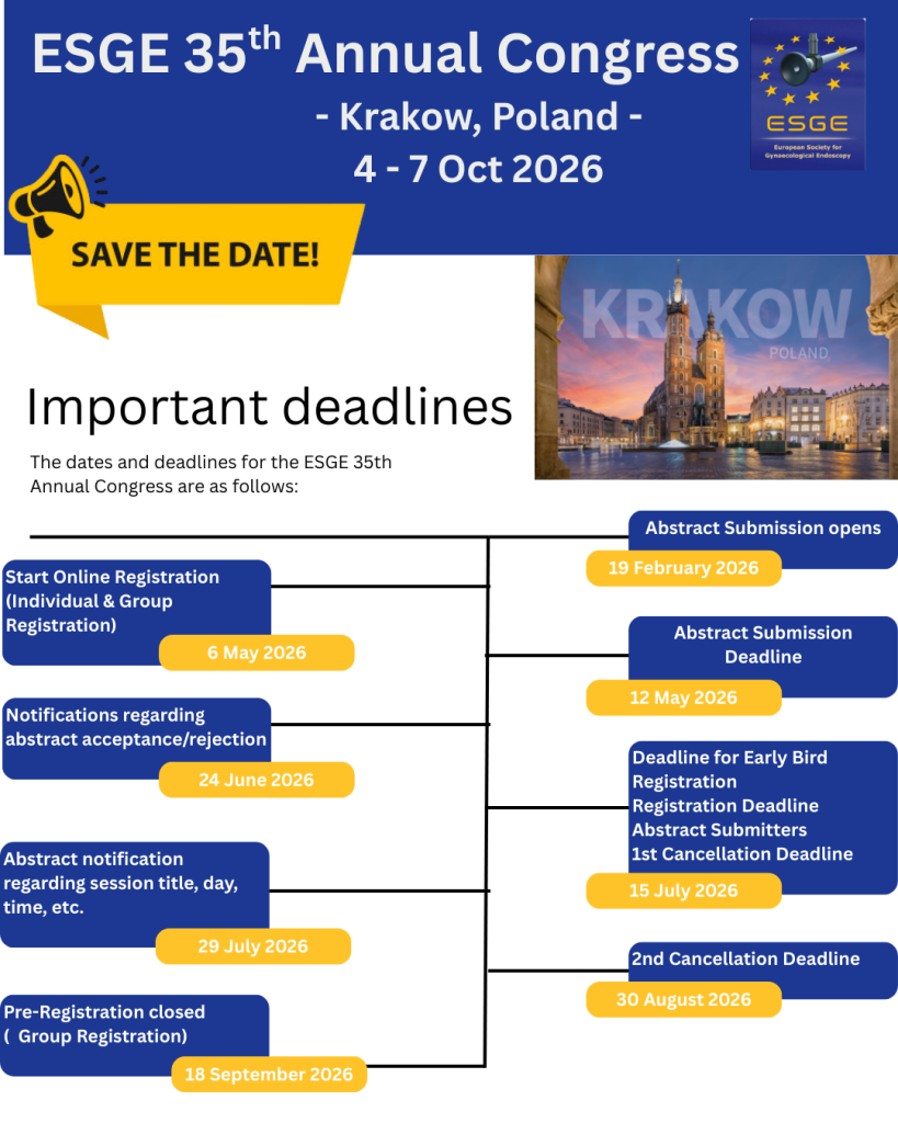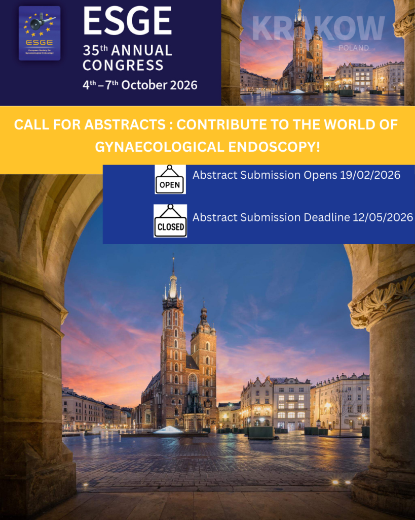 Dear Colleagues and Friends, We are pleased to announce that the 35th Annual Congress of the European Society for Gynaecological Endoscopy (ESGE) will take place in Krakow (Poland) from 4th […]